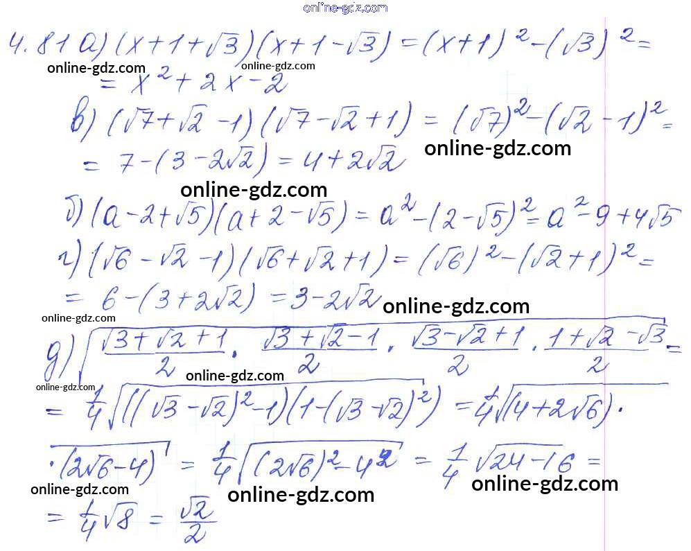 Готовые домашние задания по Алгебре за 8 класс Сборник задач Галицкий, Гольдман 2019 - §4. Квадратные корни 4.81