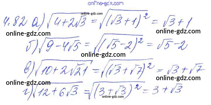 Готовые домашние задания по Алгебре за 8 класс Сборник задач Галицкий, Гольдман 2019 - §4. Квадратные корни 4.82