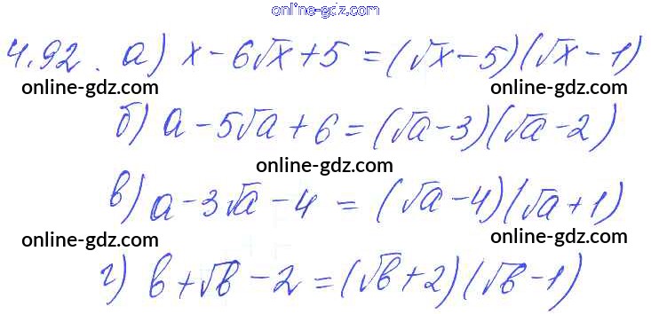 Готовые домашние задания по Алгебре за 8 класс Сборник задач Галицкий, Гольдман 2019 - §4. Квадратные корни 4.92
