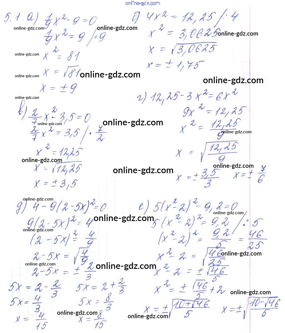 Готовые домашние задания по Алгебре за 8 класс Сборник задач Галицкий, Гольдман 2019 - §5. Квадратные уравнения 5.1