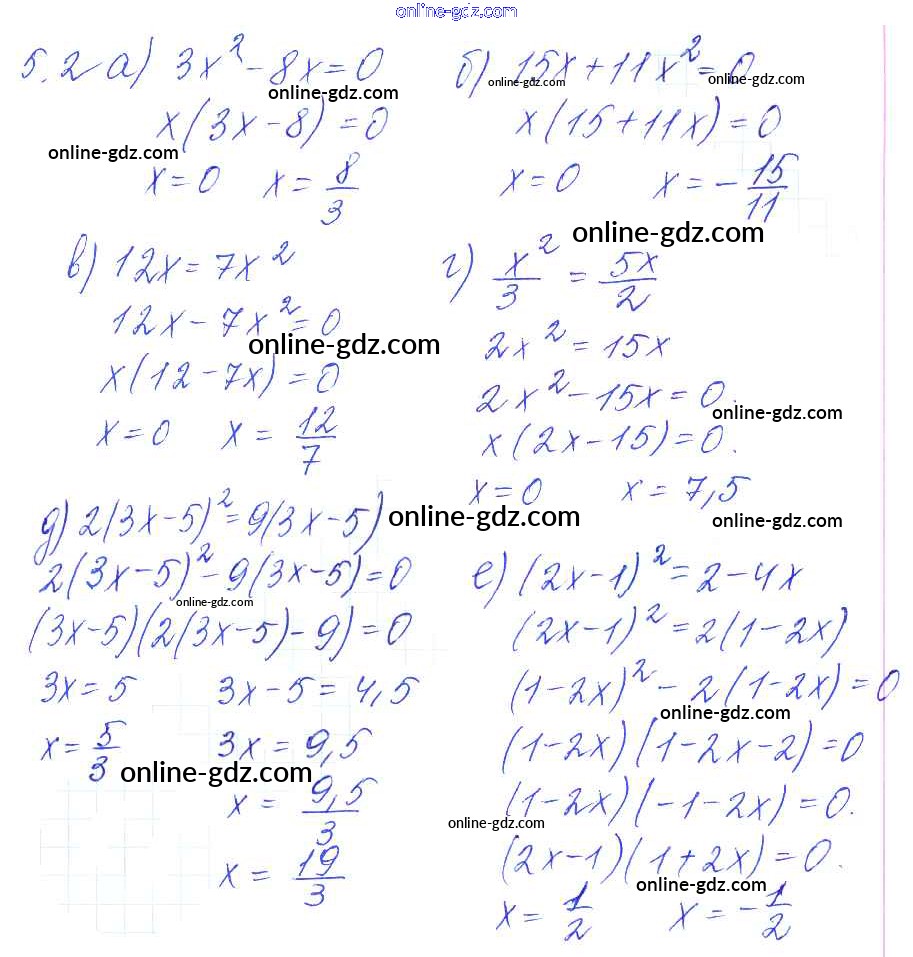 Готовые домашние задания по Алгебре за 8 класс Сборник задач Галицкий, Гольдман 2019 - §5. Квадратные уравнения 5.2