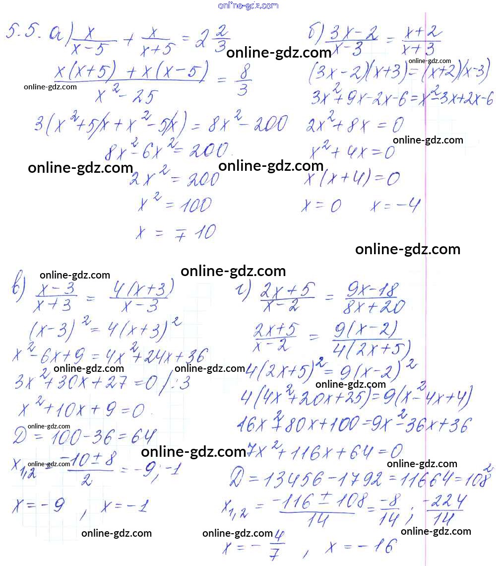 Готовые домашние задания по Алгебре за 8 класс Сборник задач Галицкий, Гольдман 2019 - §5. Квадратные уравнения 5.5