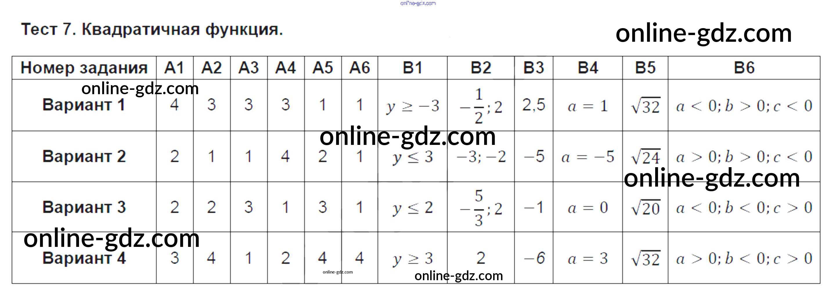 Готовые домашние задания по Алгебре за 8 класс Тематические тесты Чулков, Струков МГУ - школе 2012 - Тесты 7