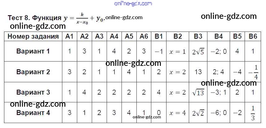 Готовые домашние задания по Алгебре за 8 класс Тематические тесты Чулков, Струков МГУ - школе 2012 - Тесты 8