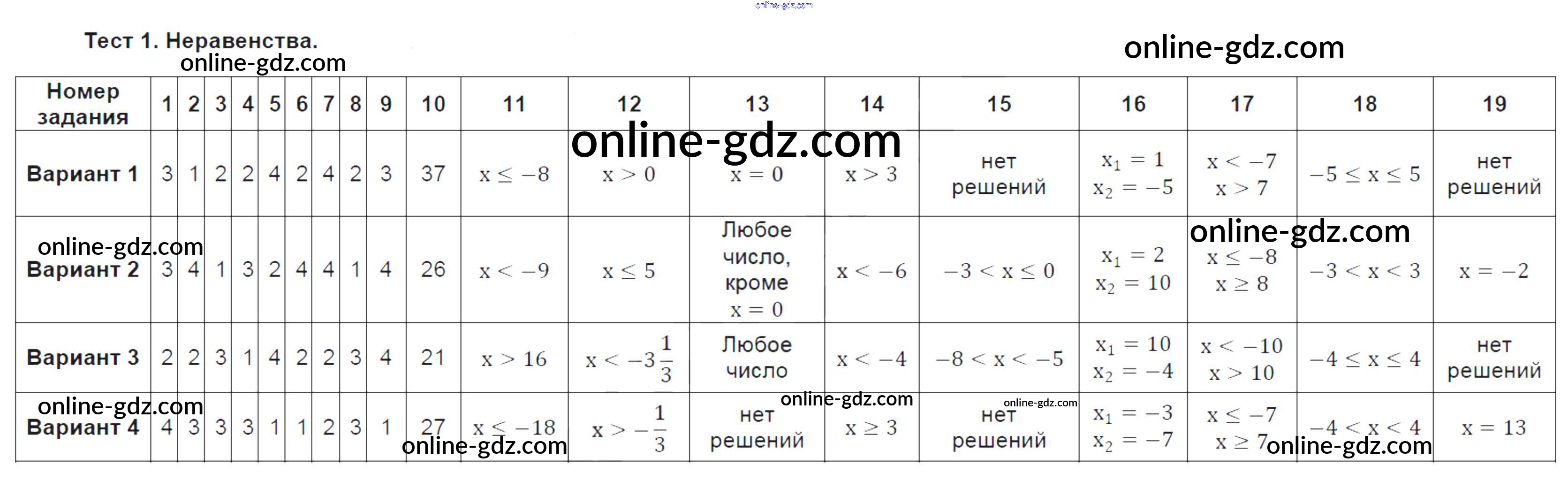 Готовые домашние задания по Алгебре за 8 класс Тематические тесты Ткачева 2018 - Тесты 1