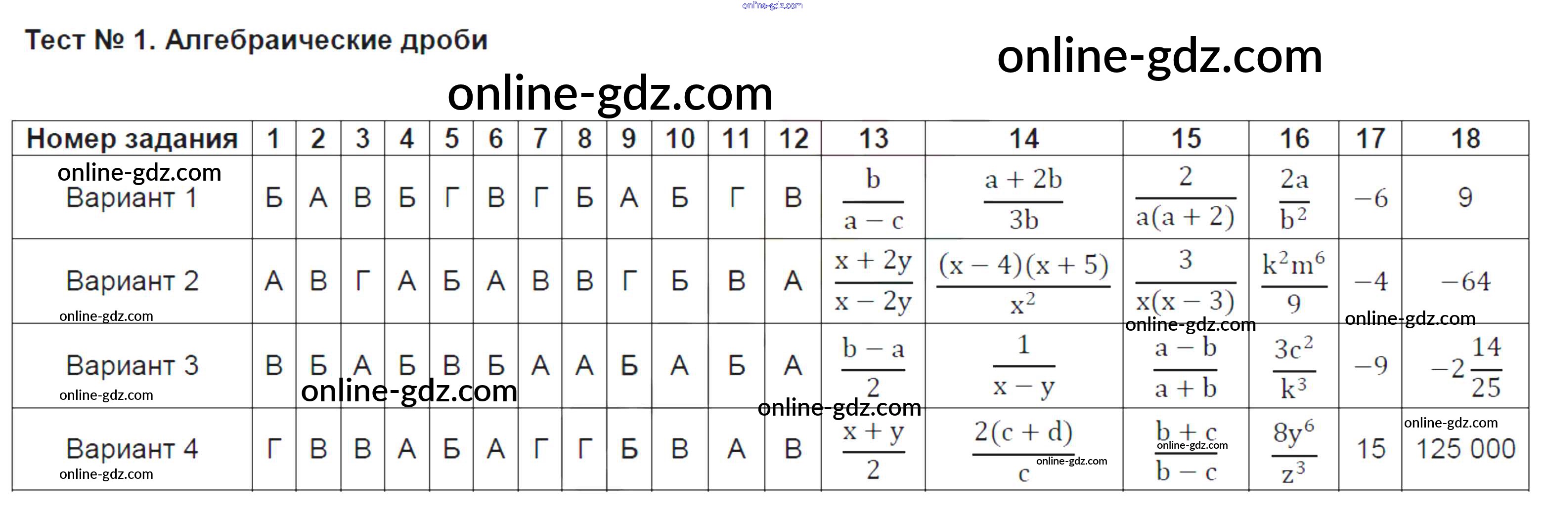 Готовые домашние задания по Алгебре за 8 класс Тесты Ключникова, Комиссарова УМК 2011 - Тесты 1