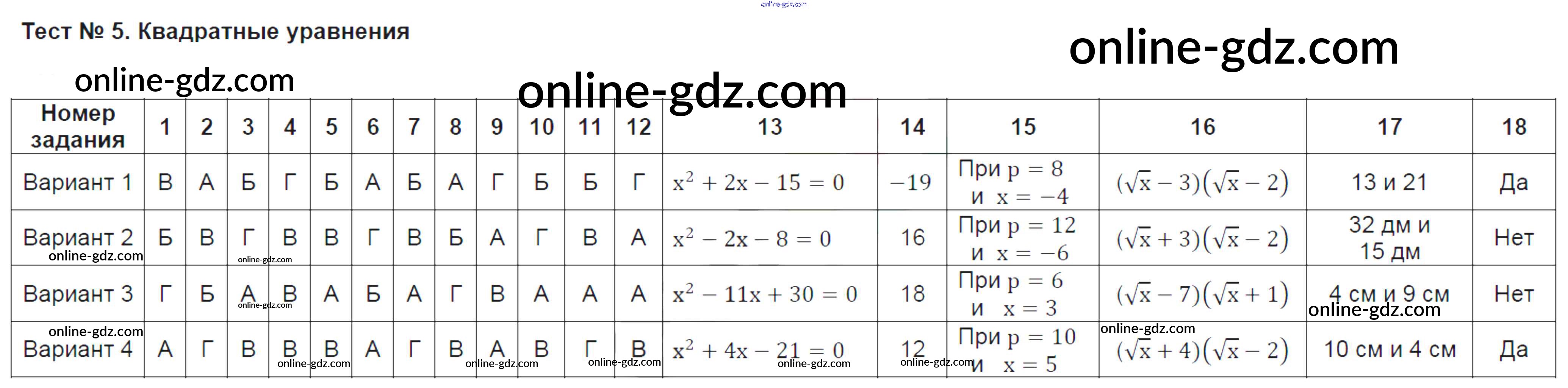 Готовые домашние задания по Алгебре за 8 класс Тесты Ключникова, Комиссарова УМК 2011 - Тесты 5