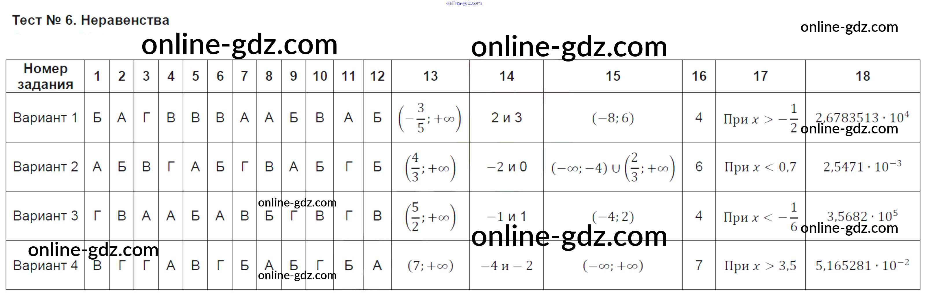 Готовые домашние задания по Алгебре за 8 класс Тесты Ключникова, Комиссарова УМК 2011 - Тесты 6