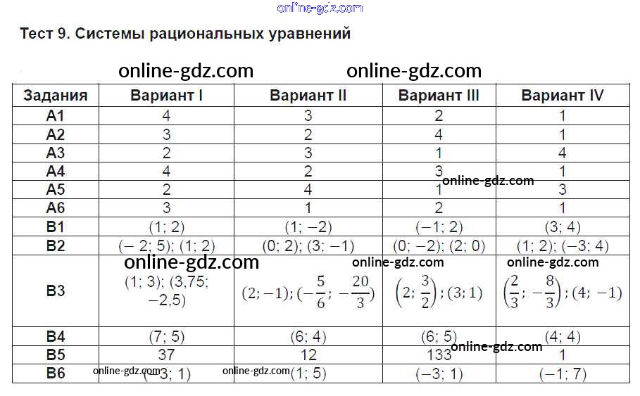 Готовые домашние задания по Алгебре за 8 класс Тесты Журавлев, Ермаков УМК 2013 - Тесты 9