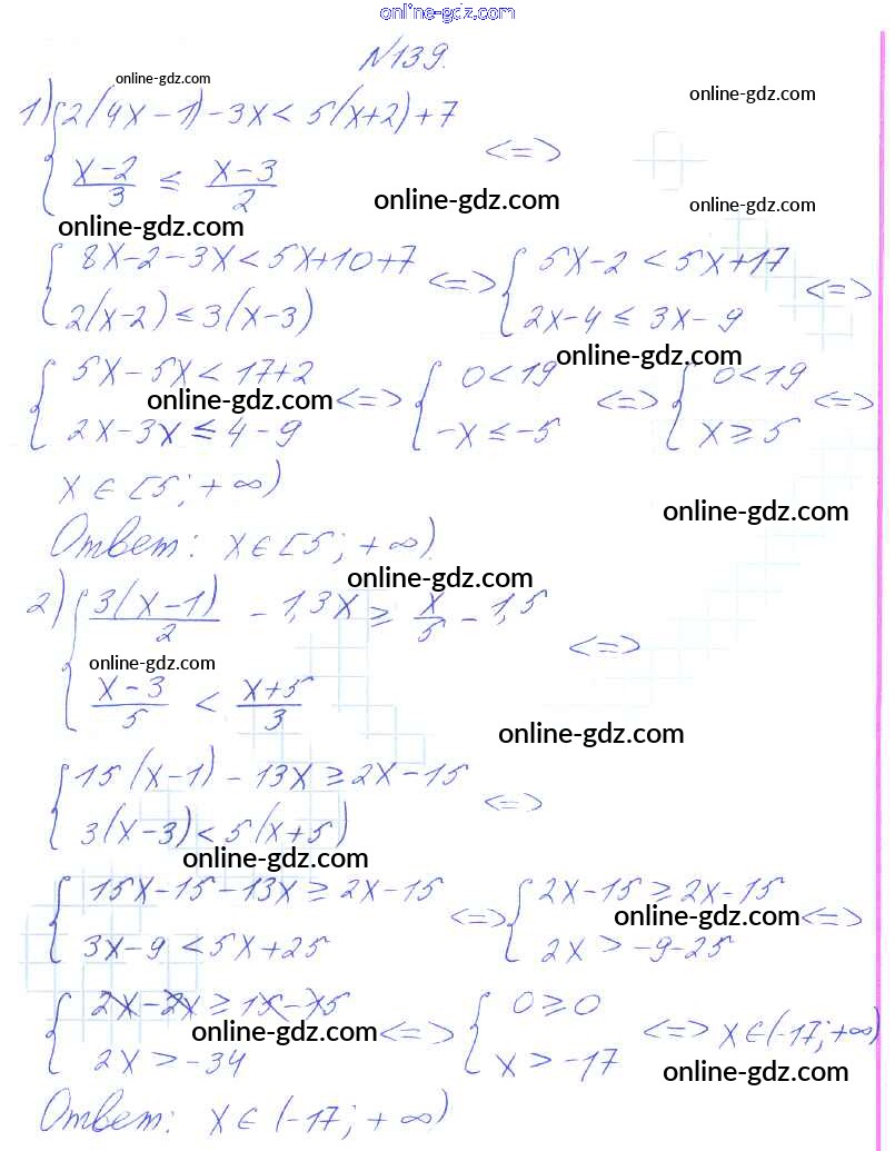 Готовые домашние задания по Алгебре за 8 класс Учебник Алимов, Колягин 2014 - Упражнения 139