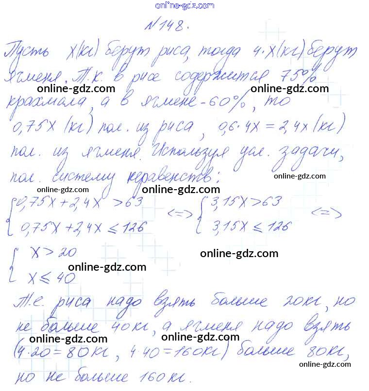 Готовые домашние задания по Алгебре за 8 класс Учебник Алимов, Колягин 2014 - Упражнения 148