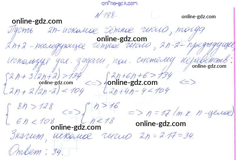 Готовые домашние задания по Алгебре за 8 класс Учебник Алимов, Колягин 2014 - Упражнения 188