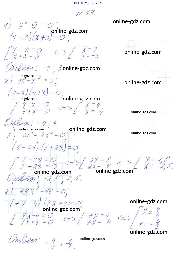 Готовые домашние задания по Алгебре за 8 класс Учебник Алимов, Колягин 2014 - Упражнения 19