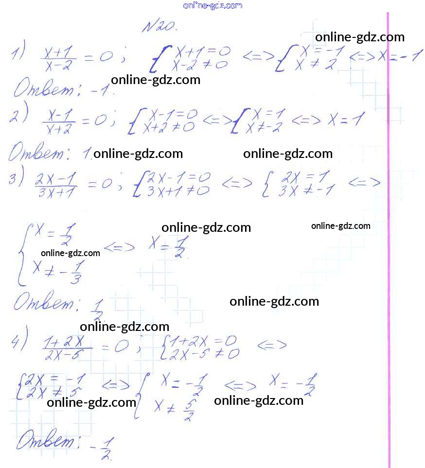 Готовые домашние задания по Алгебре за 8 класс Учебник Алимов, Колягин 2014 - Упражнения 20