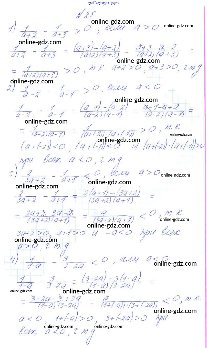 Готовые домашние задания по Алгебре за 8 класс Учебник Алимов, Колягин 2014 - Упражнения 25