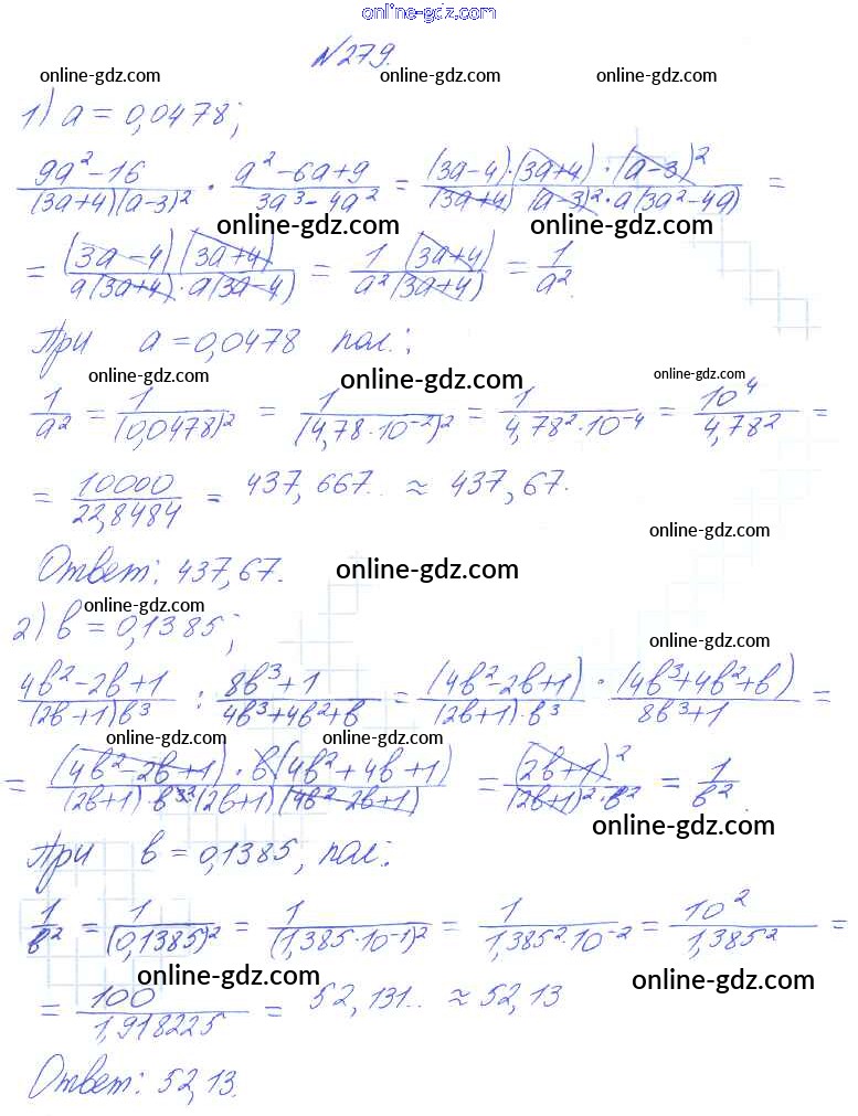 Готовые домашние задания по Алгебре за 8 класс Учебник Алимов, Колягин 2014 - Упражнения 279