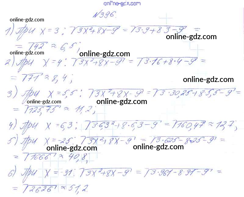 Готовые домашние задания по Алгебре за 8 класс Учебник Алимов, Колягин 2014 - Упражнения 396