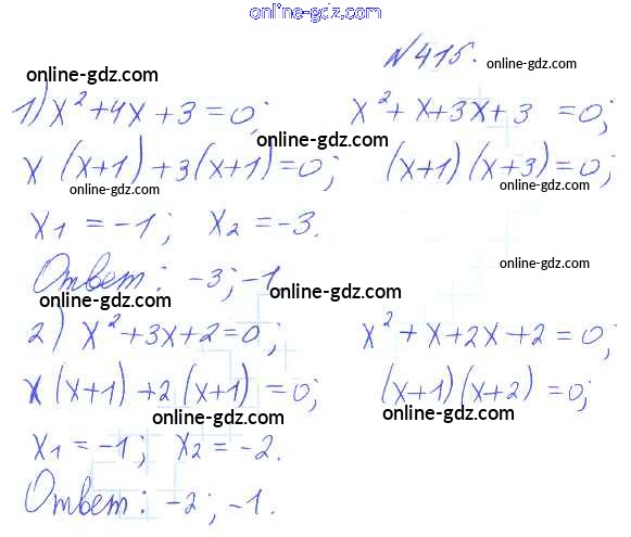 Готовые домашние задания по Алгебре за 8 класс Учебник Алимов, Колягин 2014 - Упражнения 415