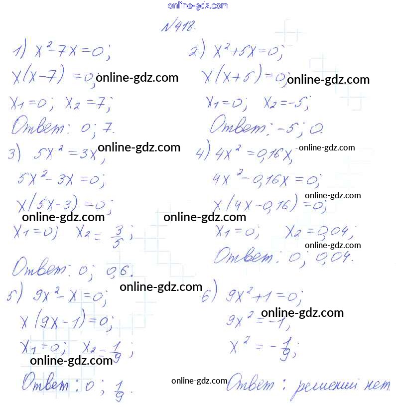 Готовые домашние задания по Алгебре за 8 класс Учебник Алимов, Колягин 2014 - Упражнения 418
