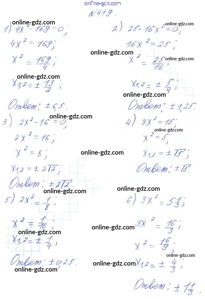 Готовые домашние задания по Алгебре за 8 класс Учебник Алимов, Колягин 2014 - Упражнения 419
