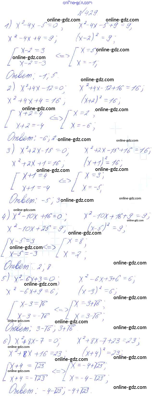 Готовые домашние задания по Алгебре за 8 класс Учебник Алимов, Колягин 2014 - Упражнения 429
