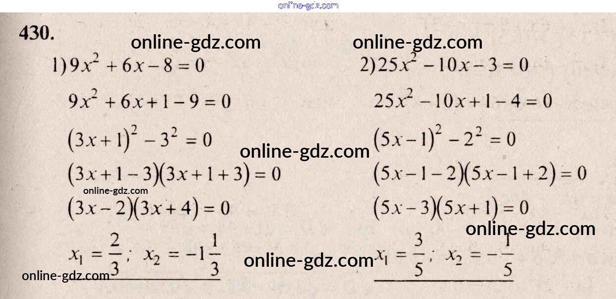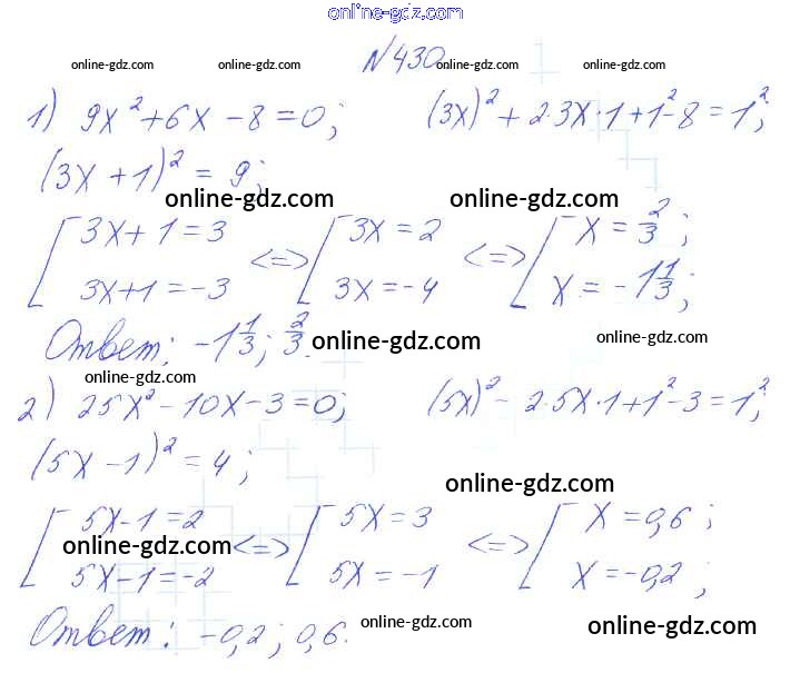 Готовые домашние задания по Алгебре за 8 класс Учебник Алимов, Колягин 2014 - Упражнения 430