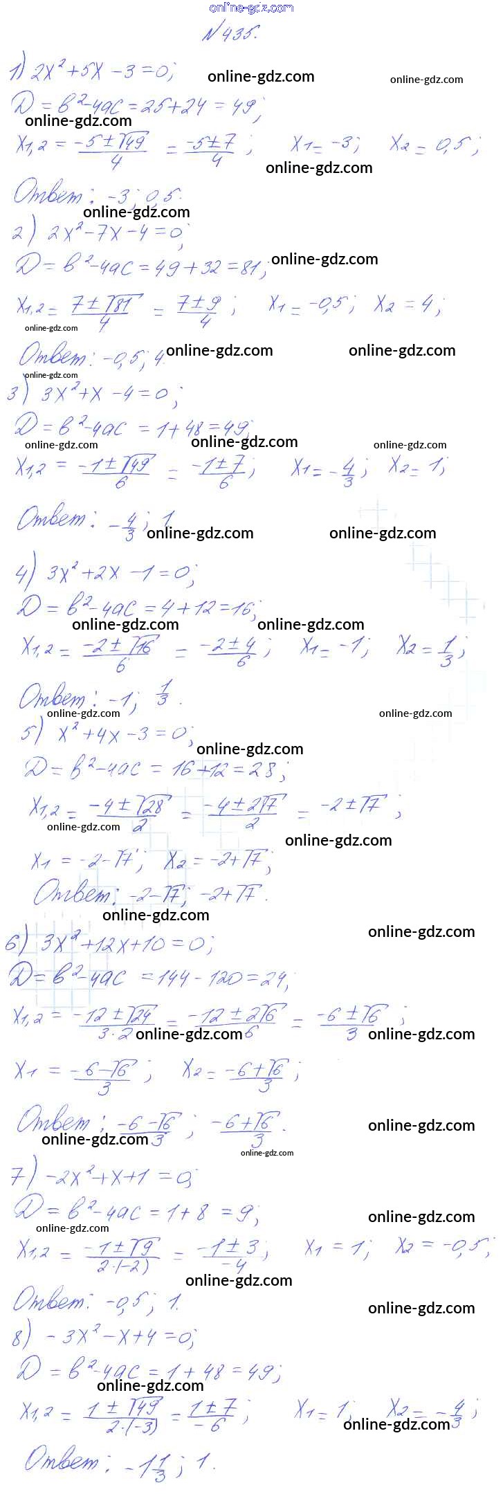 Готовые домашние задания по Алгебре за 8 класс Учебник Алимов, Колягин 2014 - Упражнения 435