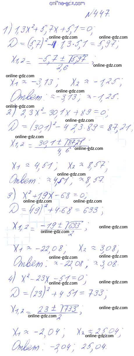 Готовые домашние задания по Алгебре за 8 класс Учебник Алимов, Колягин 2014 - Упражнения 447