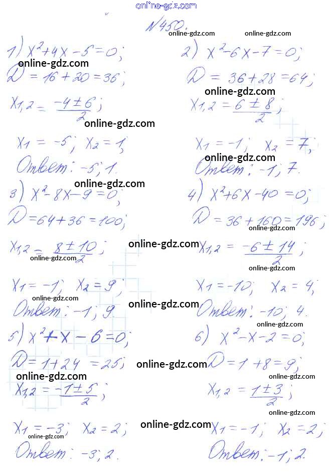 Готовые домашние задания по Алгебре за 8 класс Учебник Алимов, Колягин 2014 - Упражнения 450