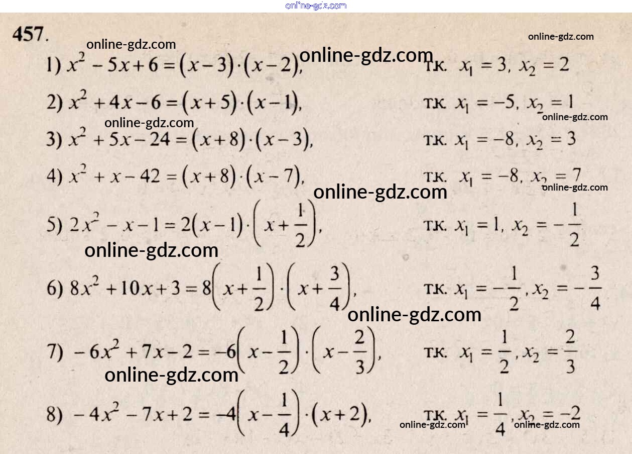 Готовые домашние задания по Алгебре за 8 класс Учебник Алимов, Колягин 2014 - Упражнения 457