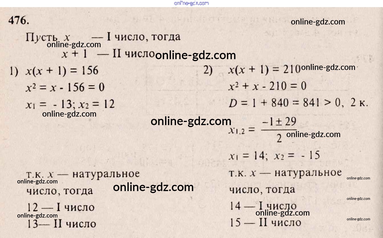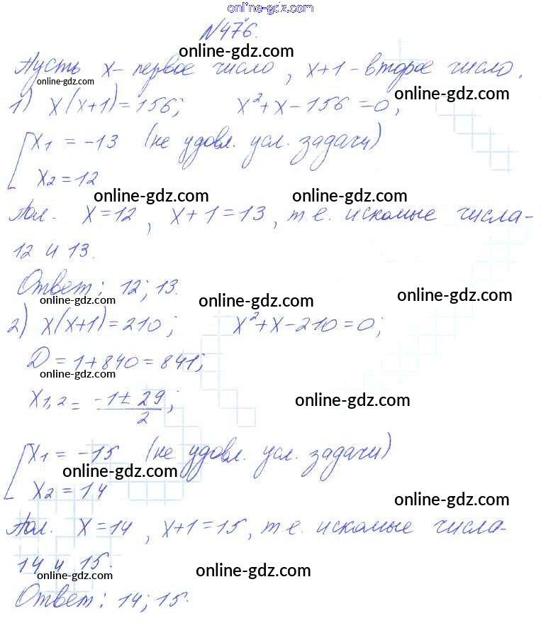 Готовые домашние задания по Алгебре за 8 класс Учебник Алимов, Колягин 2014 - Упражнения 476