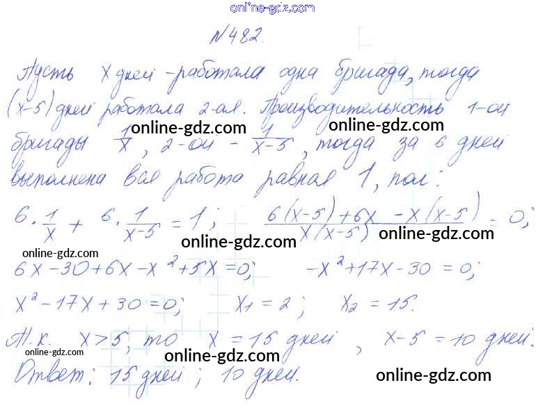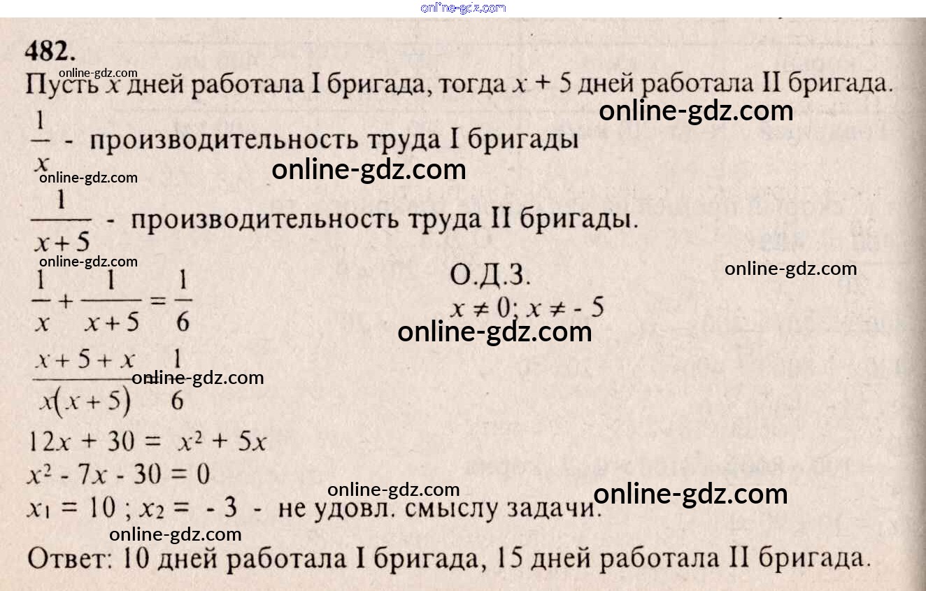 Готовые домашние задания по Алгебре за 8 класс Учебник Алимов, Колягин 2014 - Упражнения 482