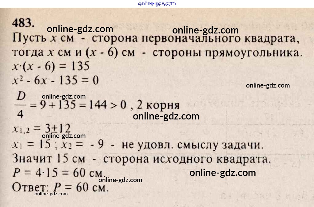 Готовые домашние задания по Алгебре за 8 класс Учебник Алимов, Колягин 2014 - Упражнения 483