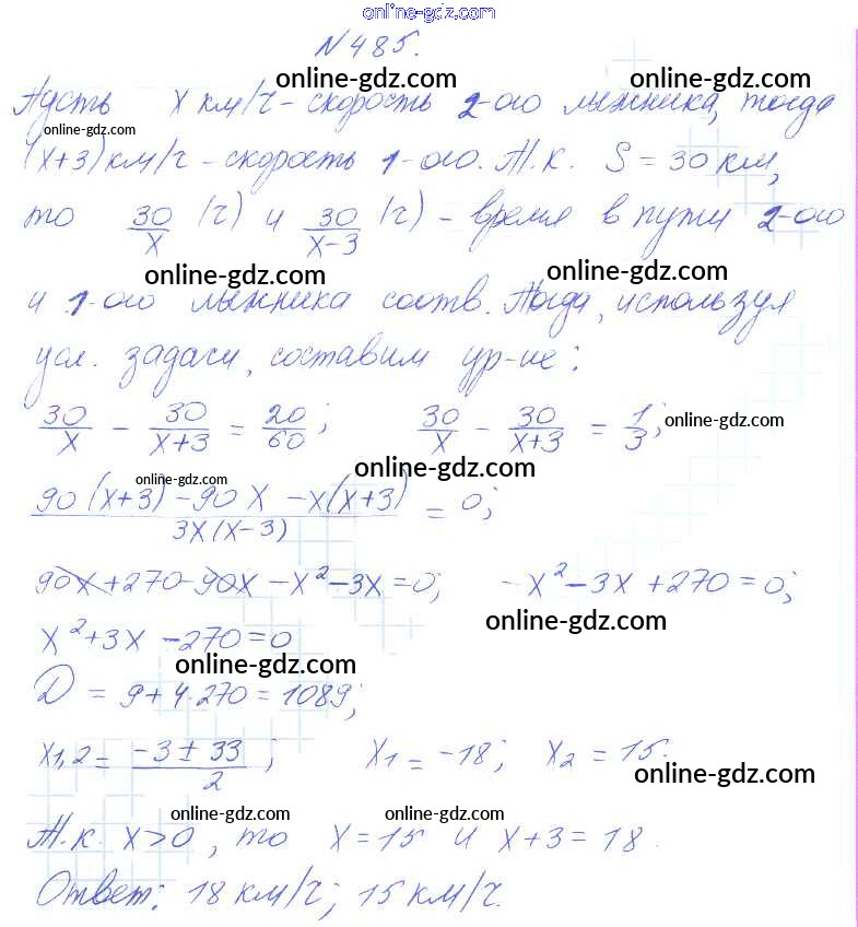 Готовые домашние задания по Алгебре за 8 класс Учебник Алимов, Колягин 2014 - Упражнения 485