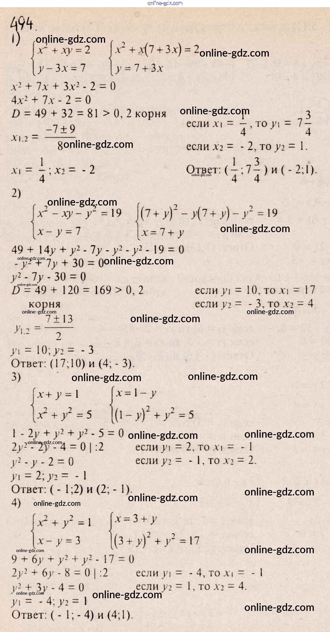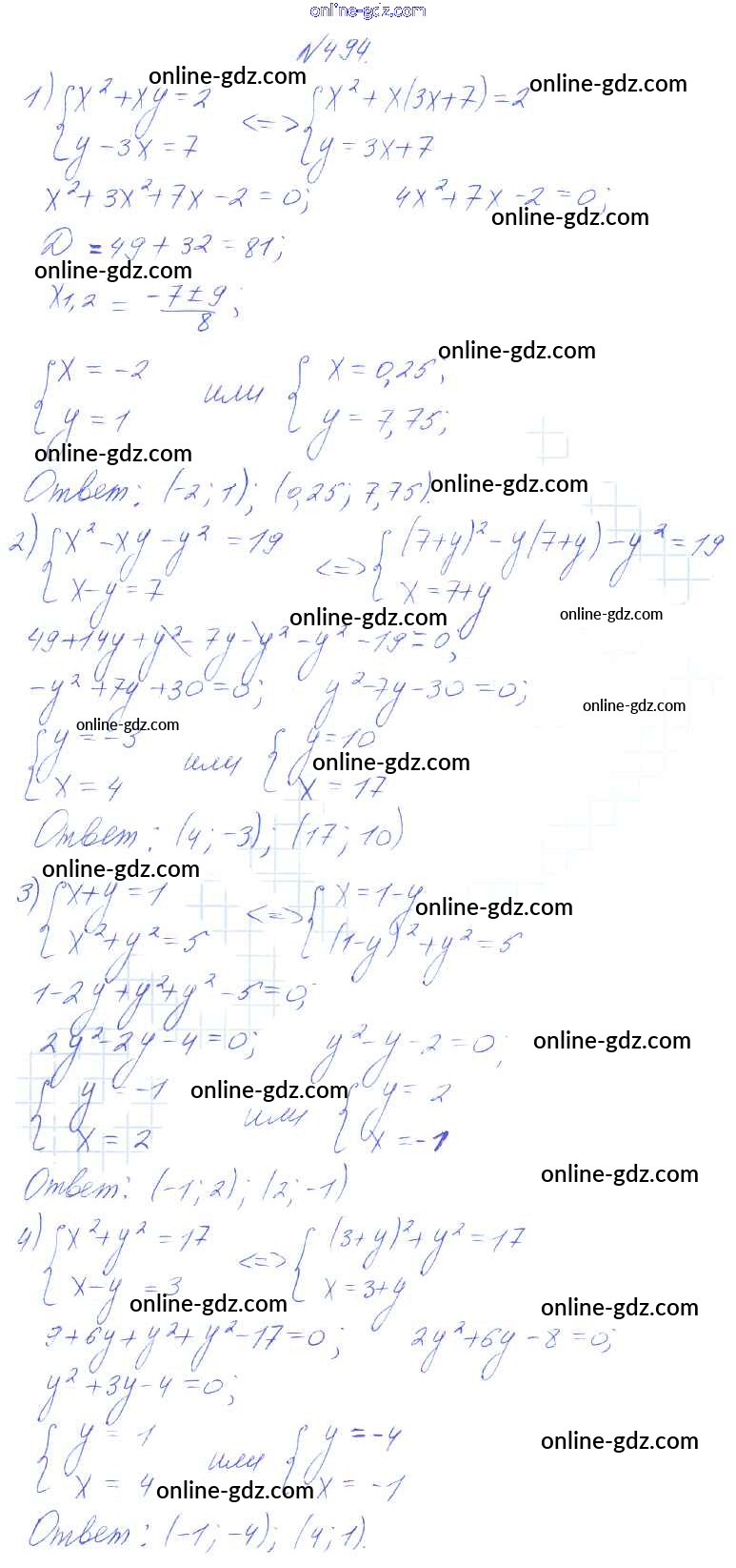Готовые домашние задания по Алгебре за 8 класс Учебник Алимов, Колягин 2014 - Упражнения 494