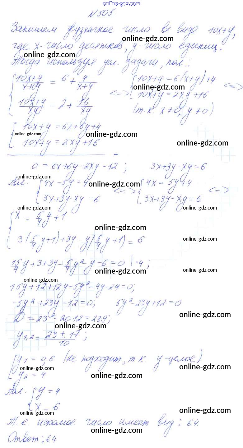 Готовые домашние задания по Алгебре за 8 класс Учебник Алимов, Колягин 2014 - Упражнения 505