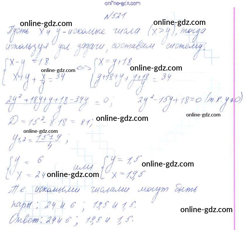 Готовые домашние задания по Алгебре за 8 класс Учебник Алимов, Колягин 2014 - Упражнения 521