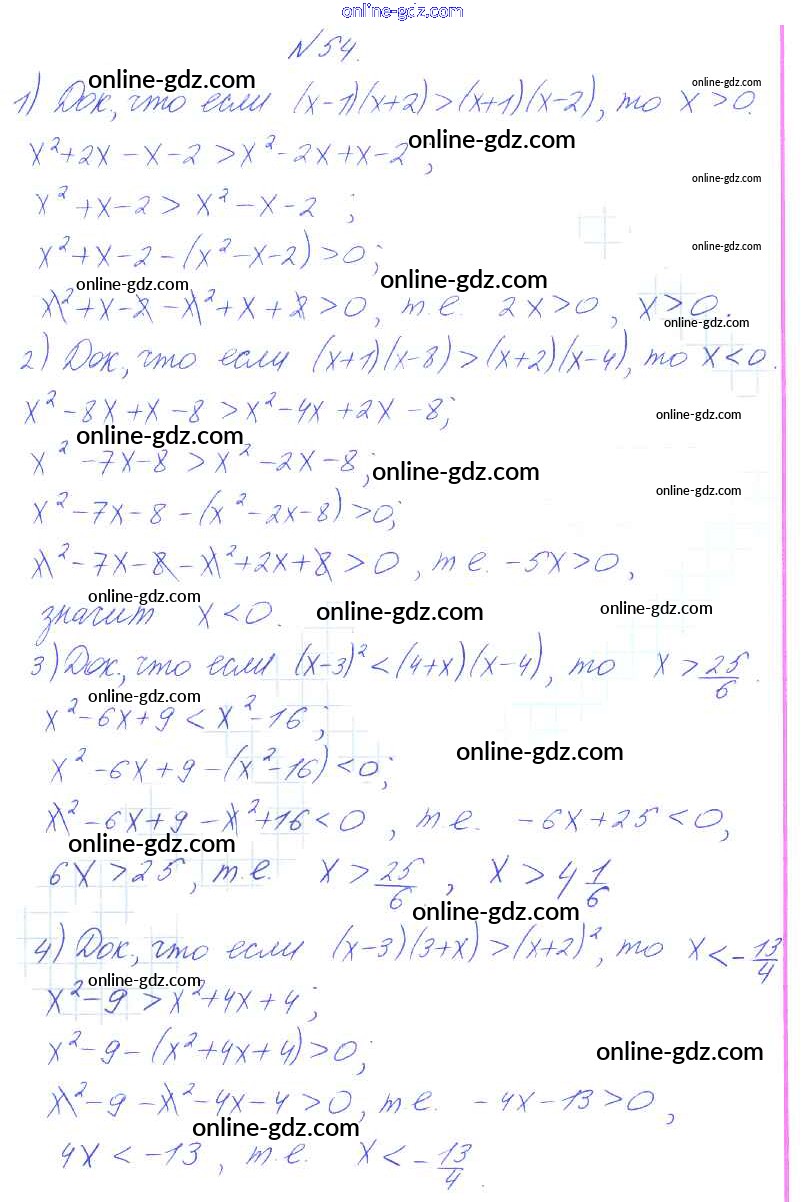 Готовые домашние задания по Алгебре за 8 класс Учебник Алимов, Колягин 2014 - Упражнения 54