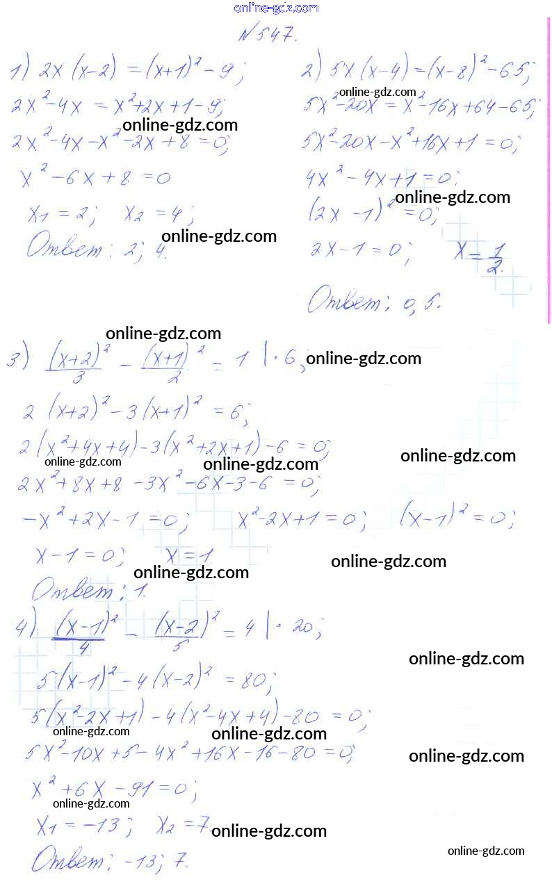 Готовые домашние задания по Алгебре за 8 класс Учебник Алимов, Колягин 2014 - Упражнения 547