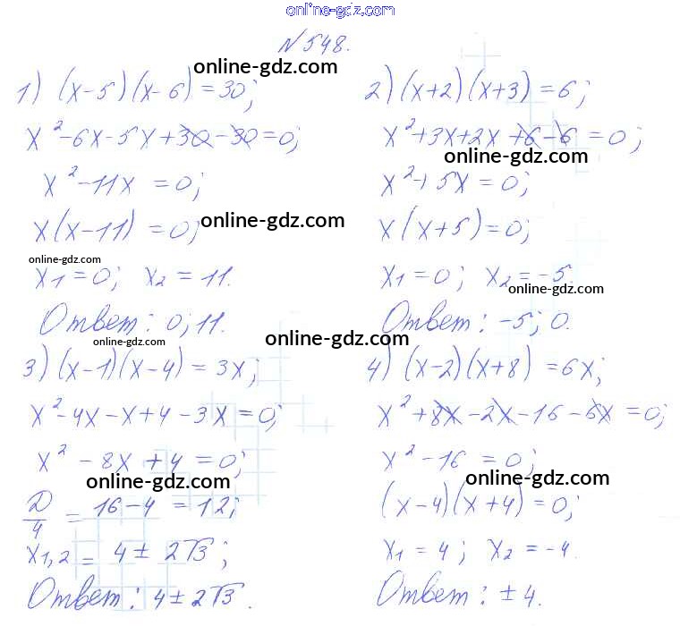 Готовые домашние задания по Алгебре за 8 класс Учебник Алимов, Колягин 2014 - Упражнения 548