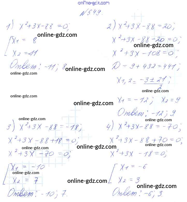 Готовые домашние задания по Алгебре за 8 класс Учебник Алимов, Колягин 2014 - Упражнения 549