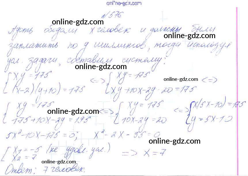 Готовые домашние задания по Алгебре за 8 класс Учебник Алимов, Колягин 2014 - Упражнения 576