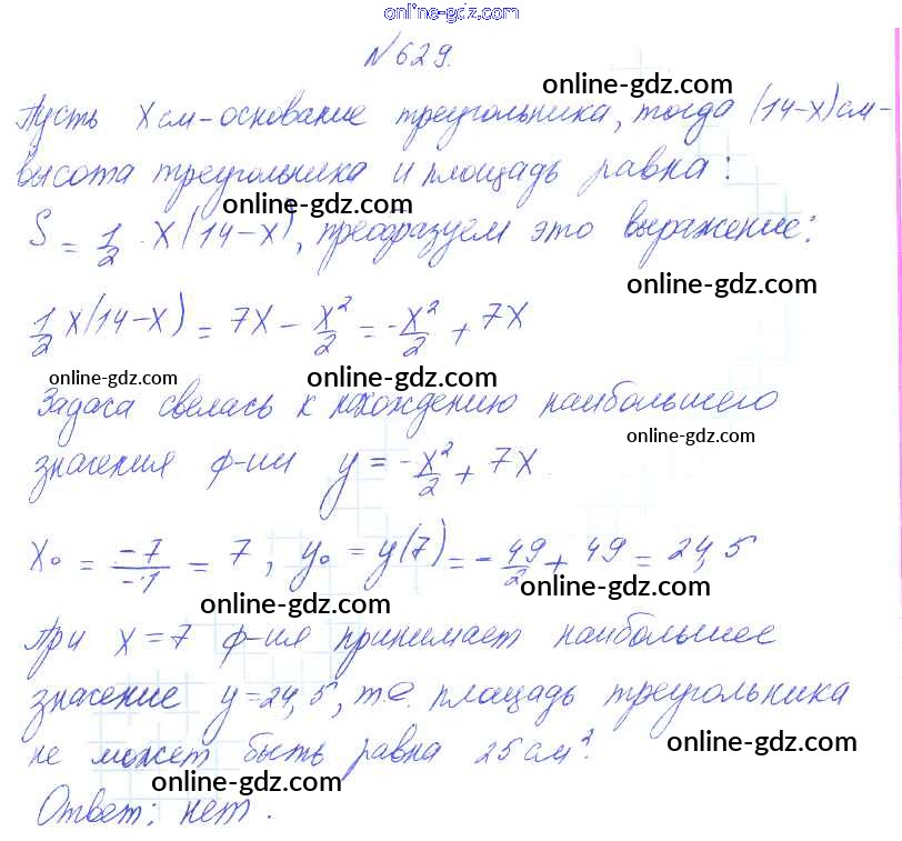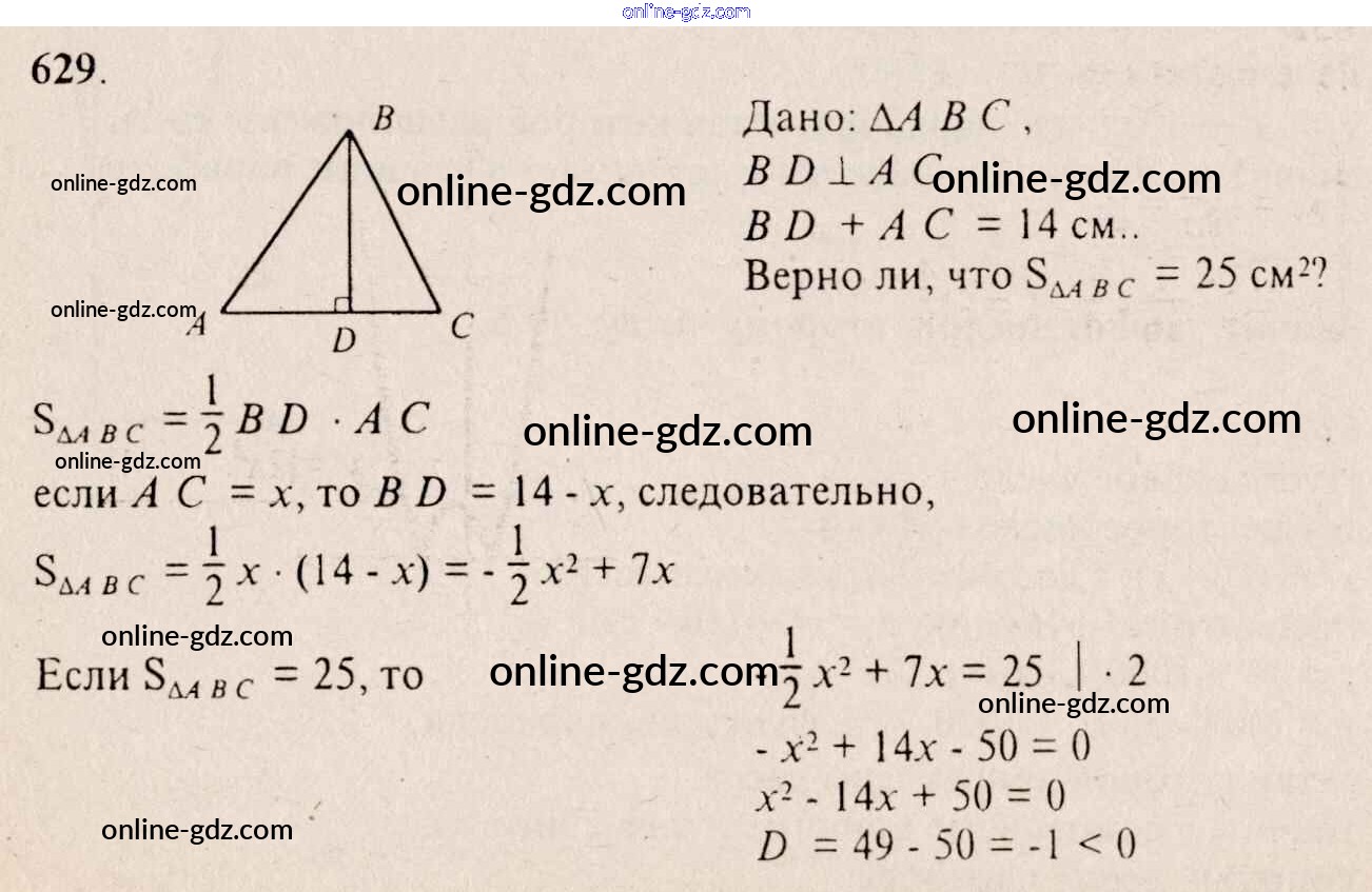 Готовые домашние задания по Алгебре за 8 класс Учебник Алимов, Колягин 2014 - Упражнения 629
