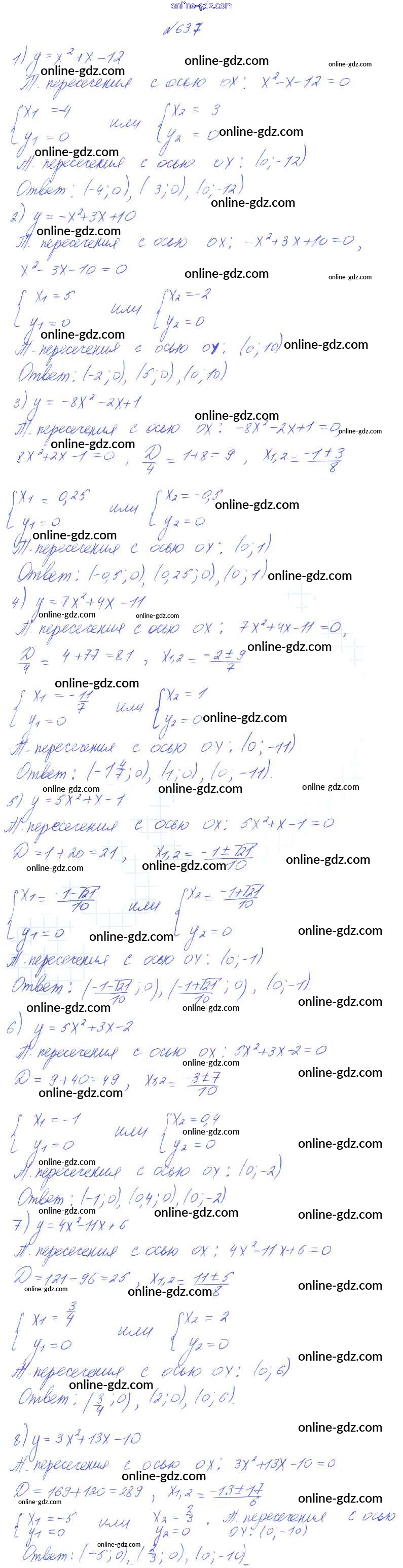 Готовые домашние задания по Алгебре за 8 класс Учебник Алимов, Колягин 2014 - Упражнения 637