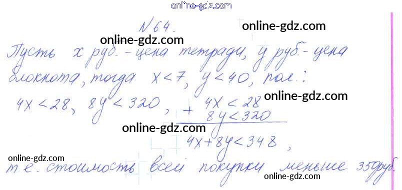 Готовые домашние задания по Алгебре за 8 класс Учебник Алимов, Колягин 2014 - Упражнения 64