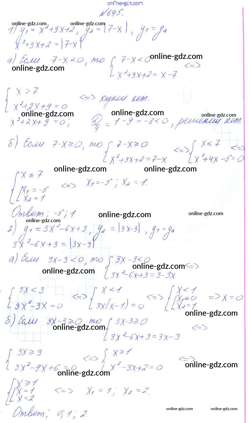 Готовые домашние задания по Алгебре за 8 класс Учебник Алимов, Колягин 2014 - Упражнения 645