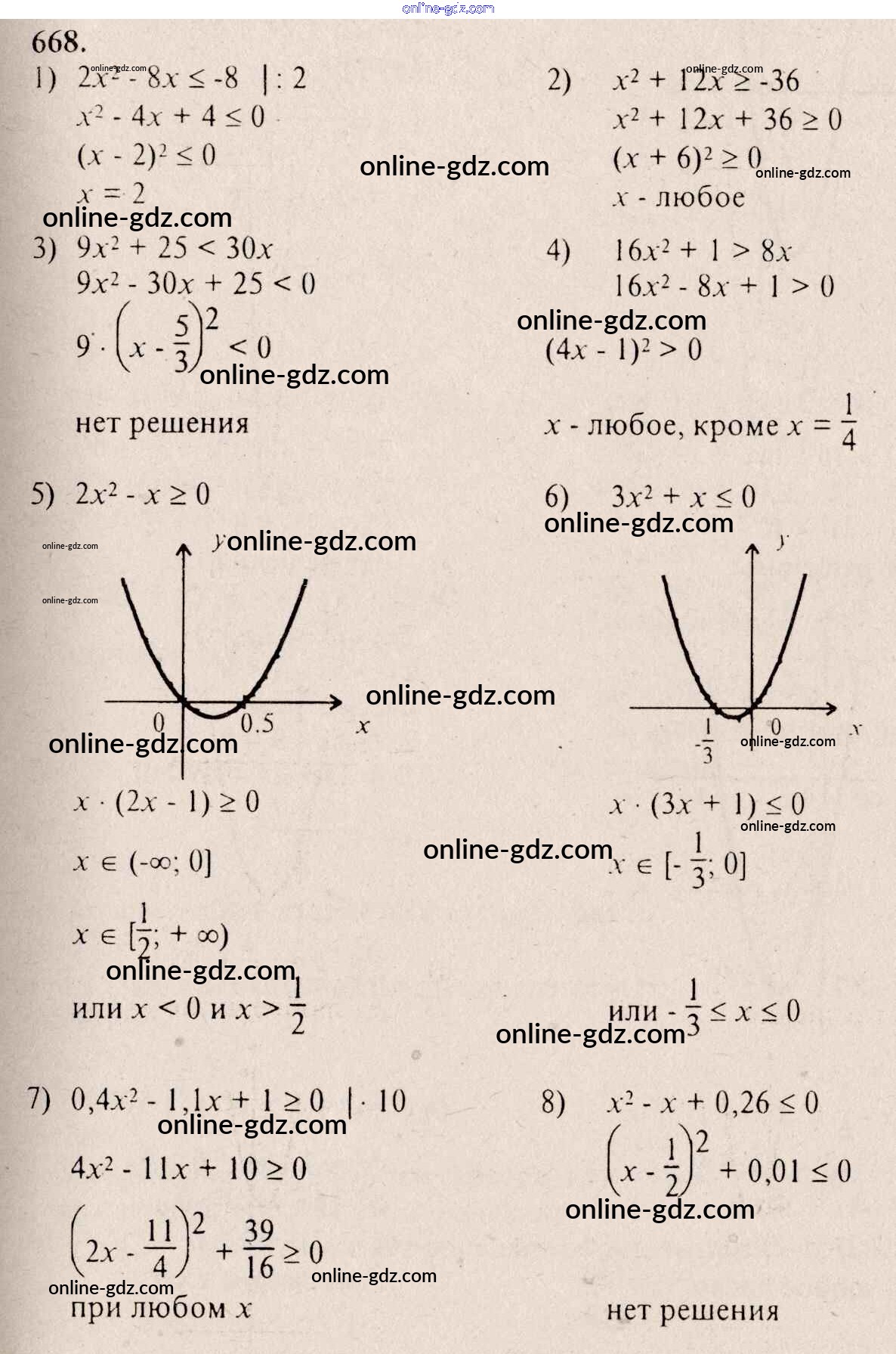 Готовые домашние задания по Алгебре за 8 класс Учебник Алимов, Колягин 2014 - Упражнения 668
