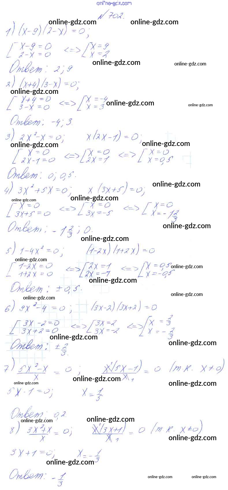 Готовые домашние задания по Алгебре за 8 класс Учебник Алимов, Колягин 2014 - Упражнения 702