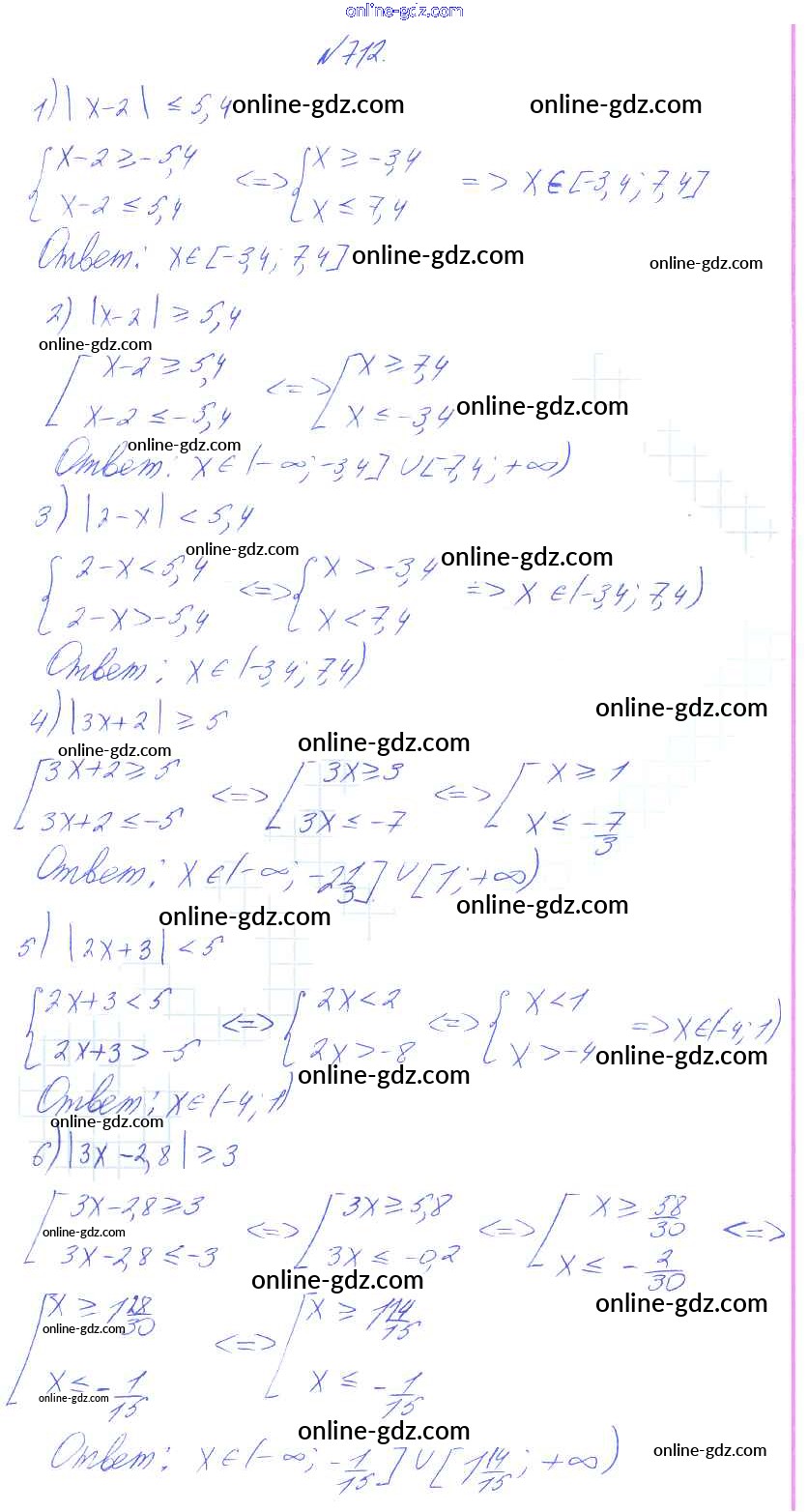 Готовые домашние задания по Алгебре за 8 класс Учебник Алимов, Колягин 2014 - Упражнения 712