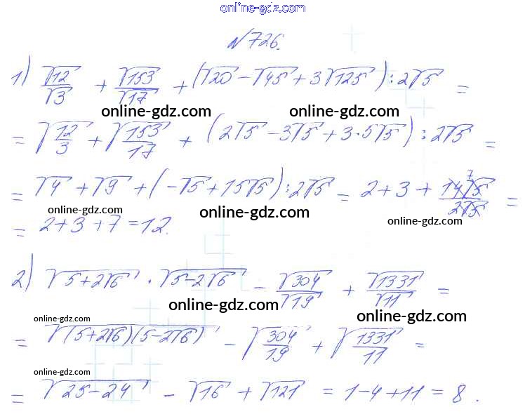 Готовые домашние задания по Алгебре за 8 класс Учебник Алимов, Колягин 2014 - Упражнения 726